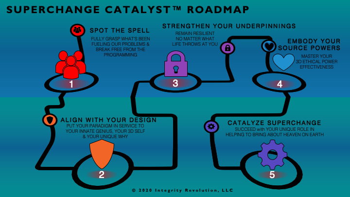 SUPERCHANGE CATALYST™ ROADMAP: A five-stage journey to equip you with inner, outer & spiritual mindsets, skills & habits to repair & evolve the world in your own unique ways.
